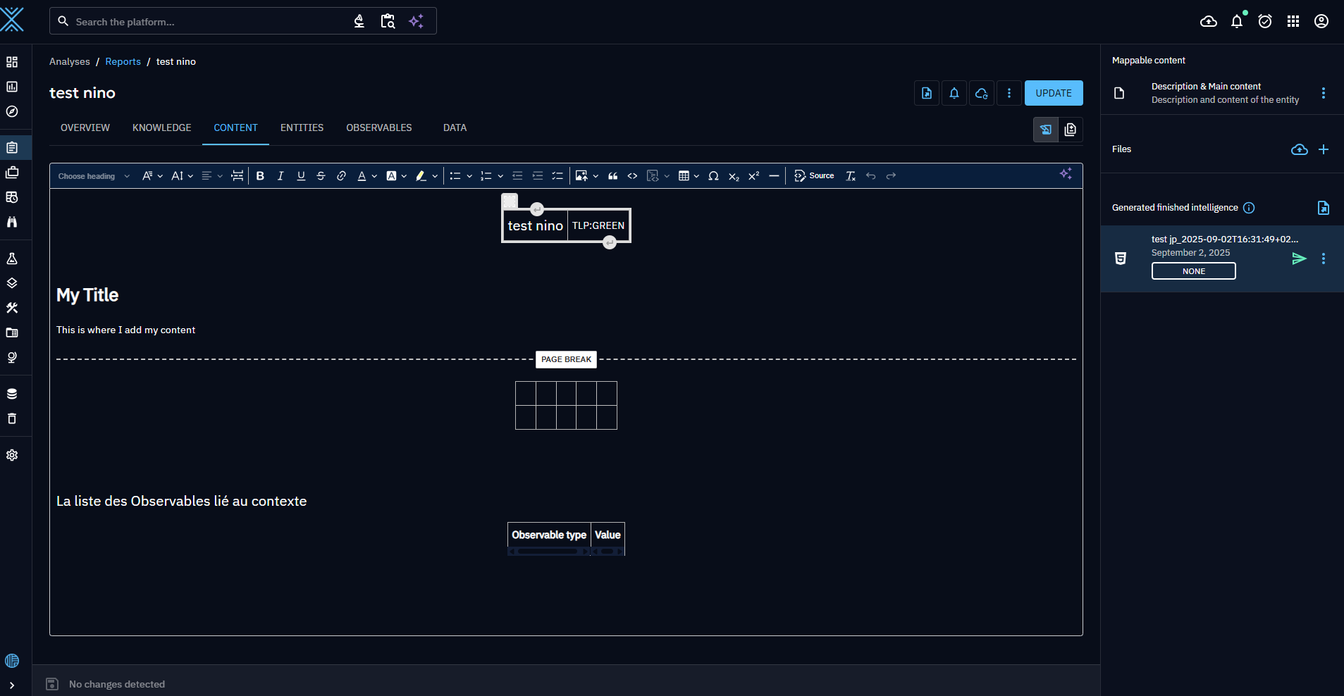 Dissemination lists are meant to be used in the context of Fintel Template. First, you need to generate a finished intelligence document. If you need more details regarding how to configure a finished intelligence document, please look for more information on this Fintel Template customization page. Once you have worked on your container & generated your template, whether it is an HTML document or a PDF document, if you have the capability to Disseminate files by email, you will be able to use your mailing list.