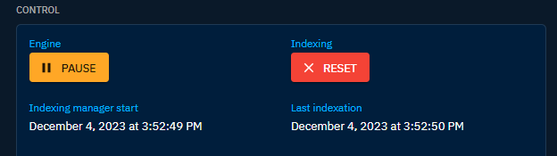 You will also be able to Pause it and restart from the beginning by pressing Reset button which deletes all indexed files from the database.
