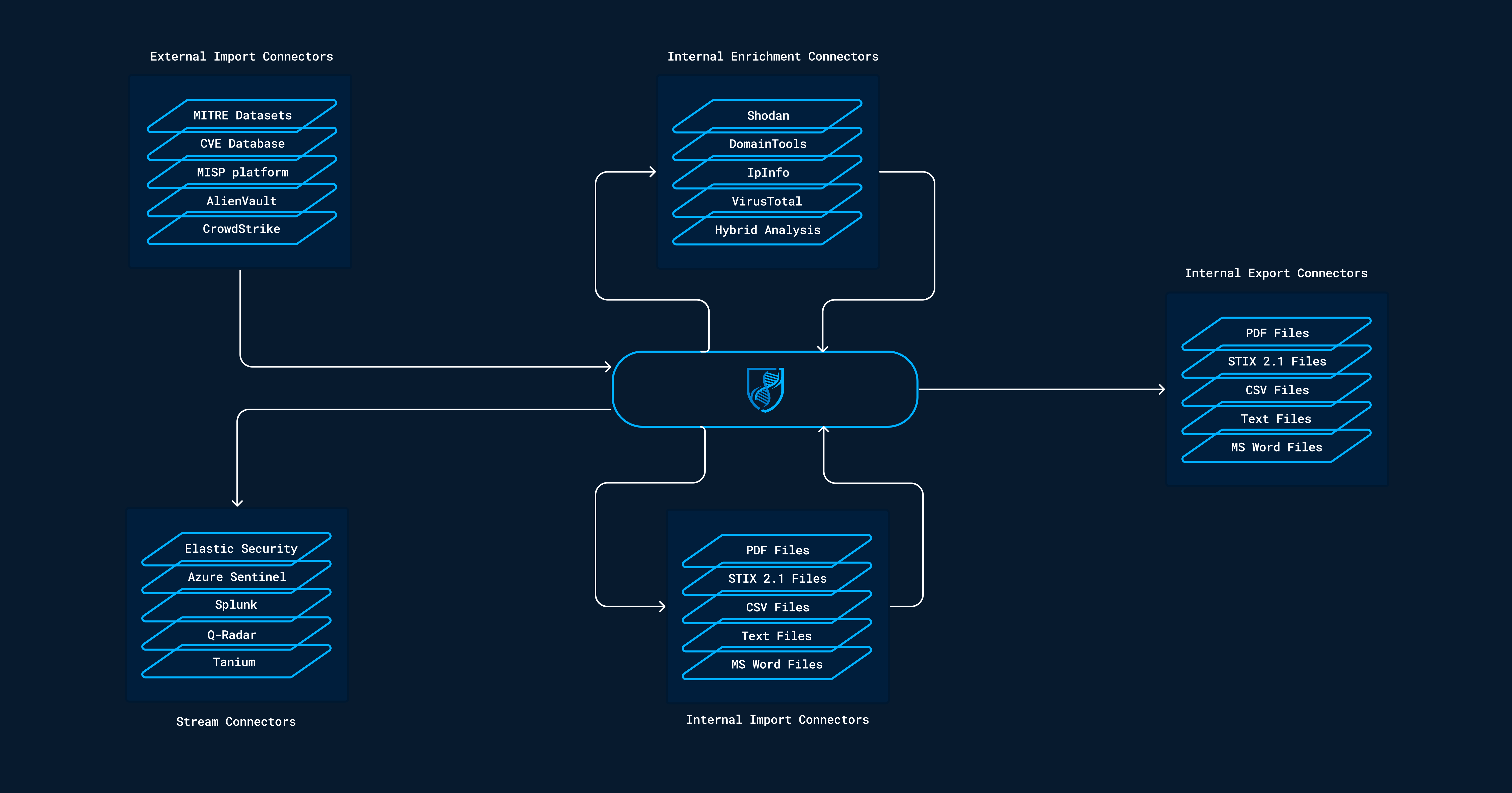 Connectors are the cornerstone of the OpenCTI platform and allow organizations to easily ingest, enrich or export data. According to their functionality and use case, they are categorized in the following classes.