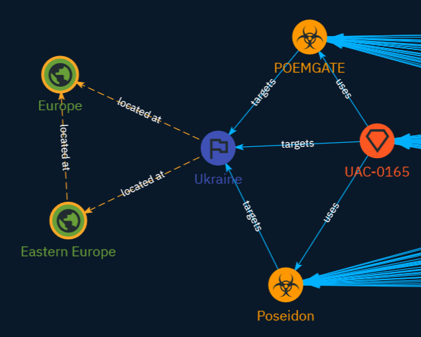 OpenCTI will apply this rule to existing data. If it finds an Intrusion Set ("Entity A") targeting a specific country ("Identity B") and that country is part of a larger region ("Identity C"), the platform will automatically establish a relationship between the Intrusion Set and the region.