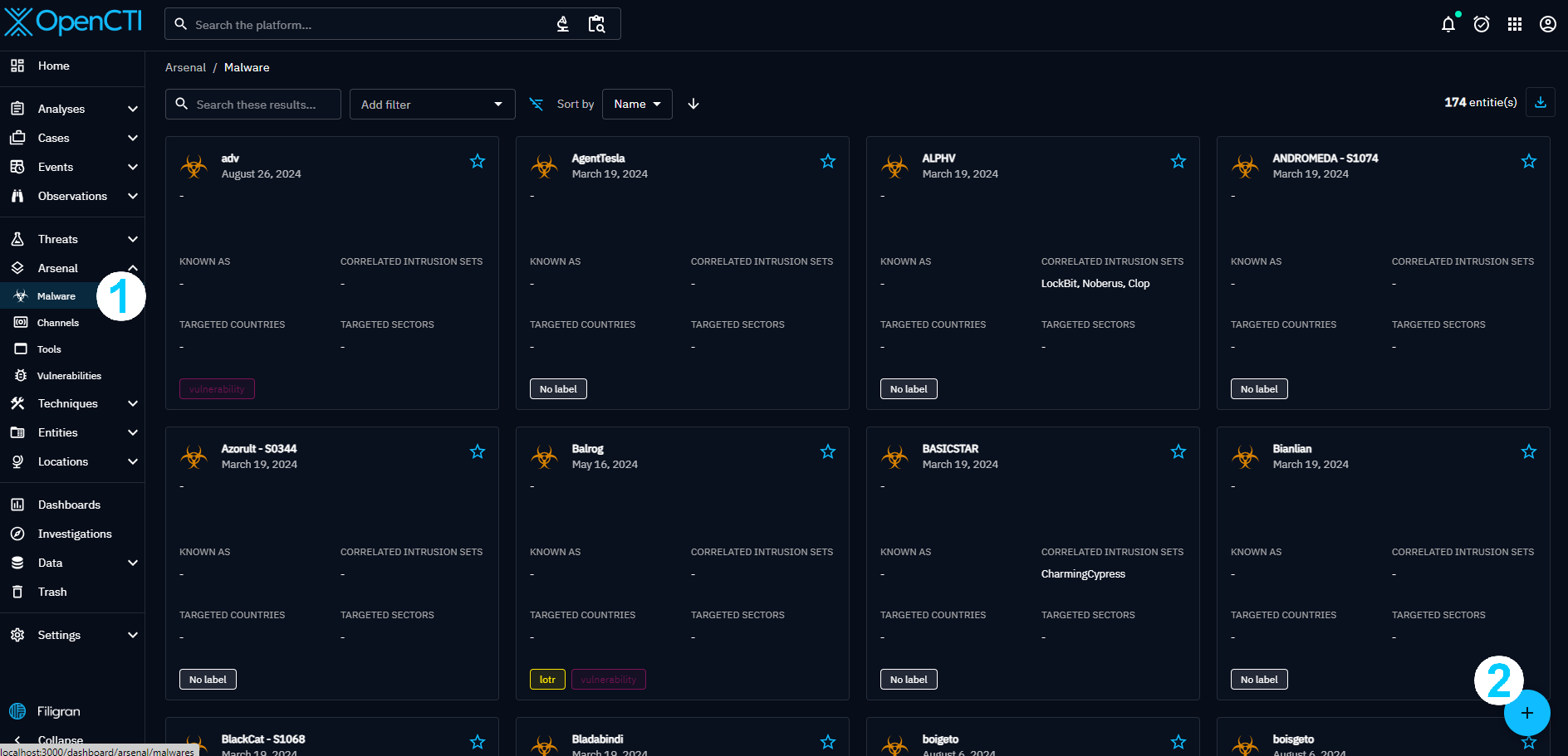 Note that bulk creation is not available for all entities for now. For example you cannot create Reports in bulk. So for our example we will use Malwares.