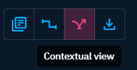 - The contextual view, which displays the indicators/observables contained in the cases and analyses that contain the entity.