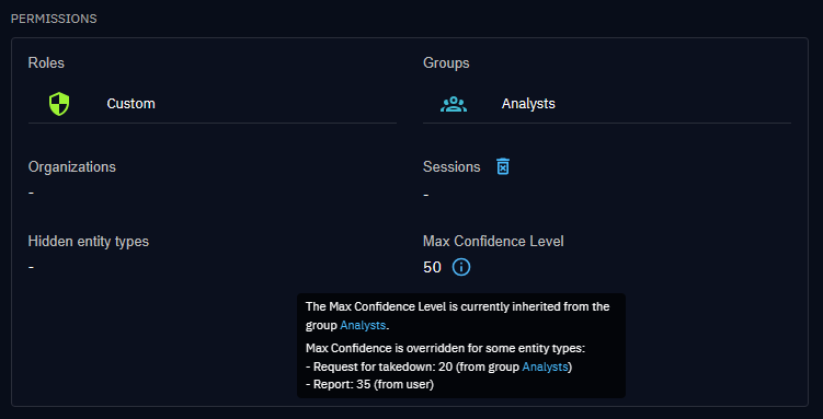 - if a user maximum confidence level is set, it overrides everything from groups, including the overrides per entity type defined at group level