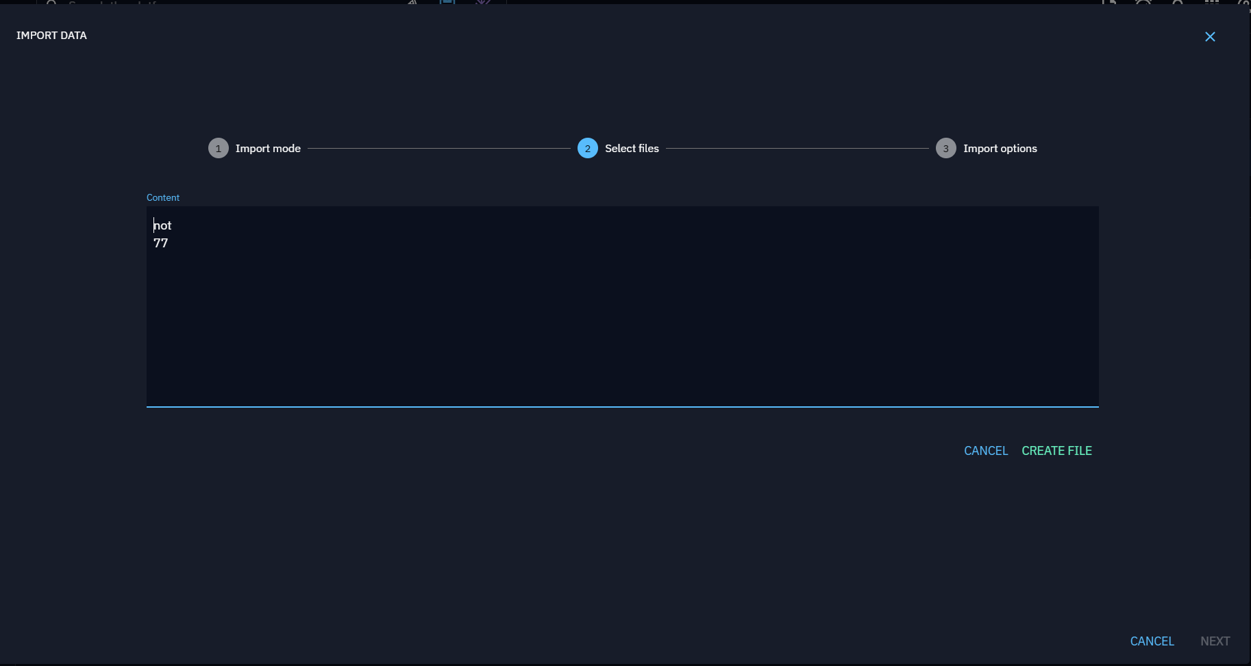 You are redirected to the Import data pop-up, prefilled with a file containing the selected unknown values. You can continue the steps, create a file, add it in a draft, etc.