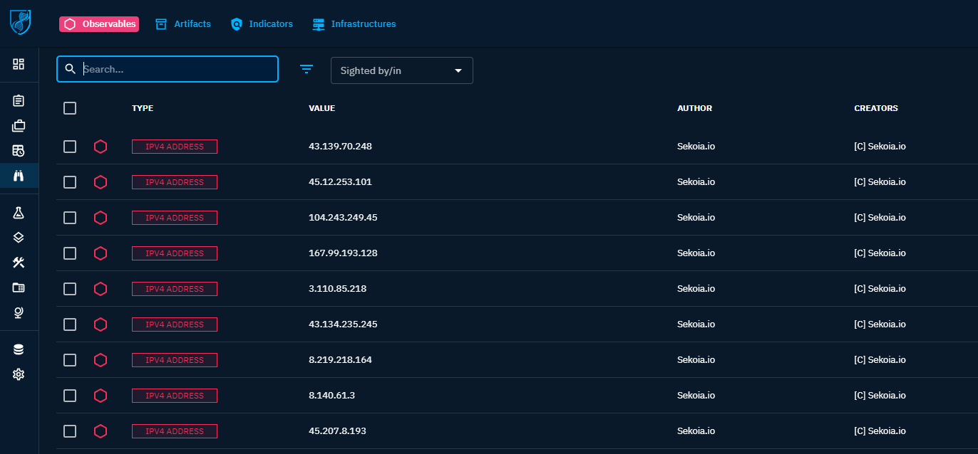 Note: OpenCTI automatically cleans and normalizes indicator search terms, including common defanged patterns (such as
