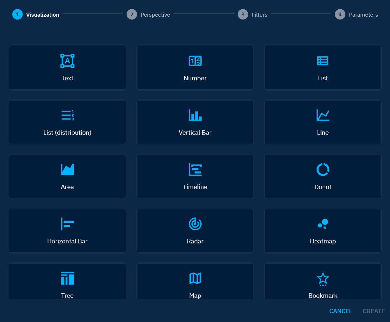 Users can select from 15 diverse visualization options to highlight different aspects of their data. This includes simple views like counters and lists, as well as more intricate views like heatmaps and trees. The chosen visualization impacts the available perspectives and parameters, making it crucial to align the view with the desired data observations. Here are a few insights: